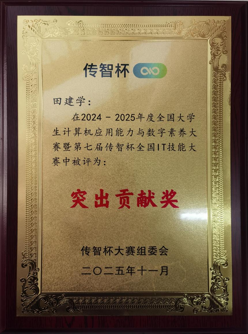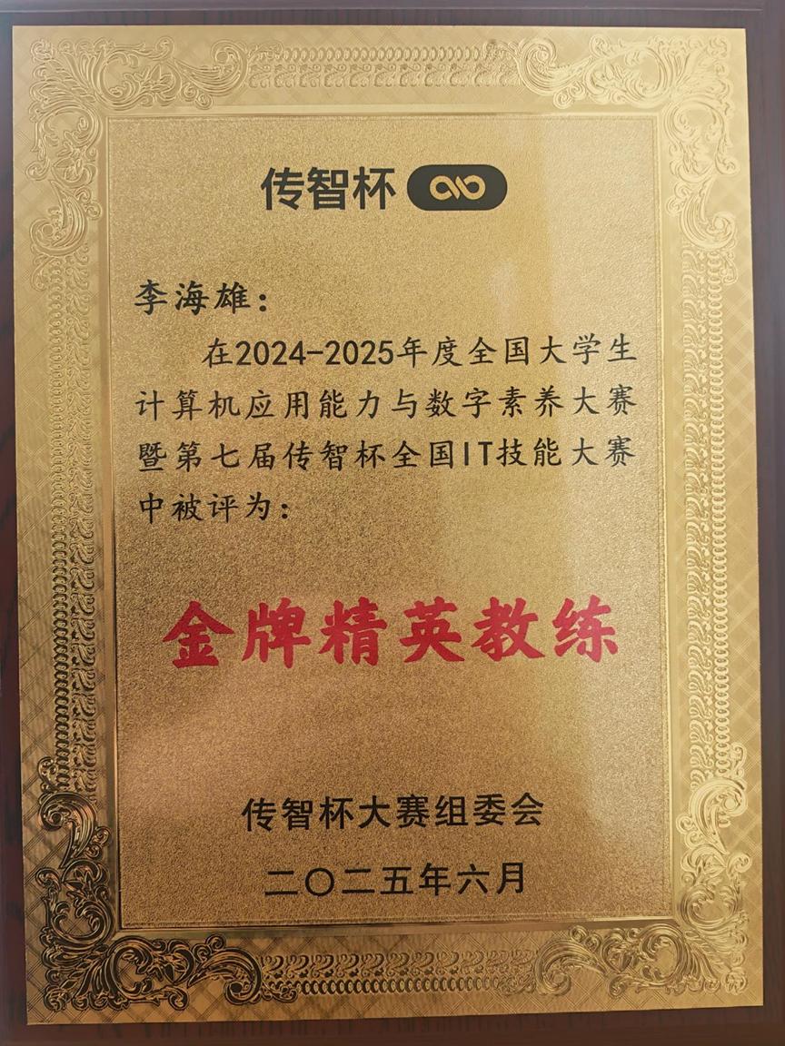 “传智杯”全国IT技能大赛由全国高等院校计算机基础教育研究会主办,赛事成功入选《2023全国普通高校大学生竞赛分析报告观察目录》、《全国普通高校大学生计算机类竞赛研究报告》、2024年、2025年连续入选《普通高校大学生计算机竞赛指数目录》等权威竞赛榜单,自启动以来,历经七届发展,覆盖全国1700余所高校,已成为国内计算机教育领域规模最大、影响力最广的赛事之一。据统计,在第六届、第七届“传智杯”大赛中,太阳成集团tyc151cc(人工智能产业学院)表现突出,连续两年斩获大赛全国总决赛一等奖,并获得其他等级奖项共计77项,获奖数量与质量均居陕西赛区高校前列。 指导教师李海雄被授予“金牌精英教练”称号,指导教师与校省两级赛事组织教师田建学被授予“突出贡献奖”。